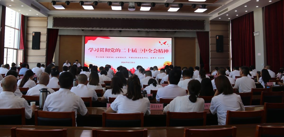近日,市建设集团党委组织举办了学习宣传贯彻党的二十届三中全会精神宣讲会,市工信局(国资委)宣讲团成员、集团党委书记、董事长李彦明在会上向集团全系统深入宣讲了党的二十届三中全会精神。集团领导班子成员、各基层单位班子成员、党组织委员、两办主任、2024年上半年预备党员、集团总部各部室负责人等180余人参加了此次宣讲活动。