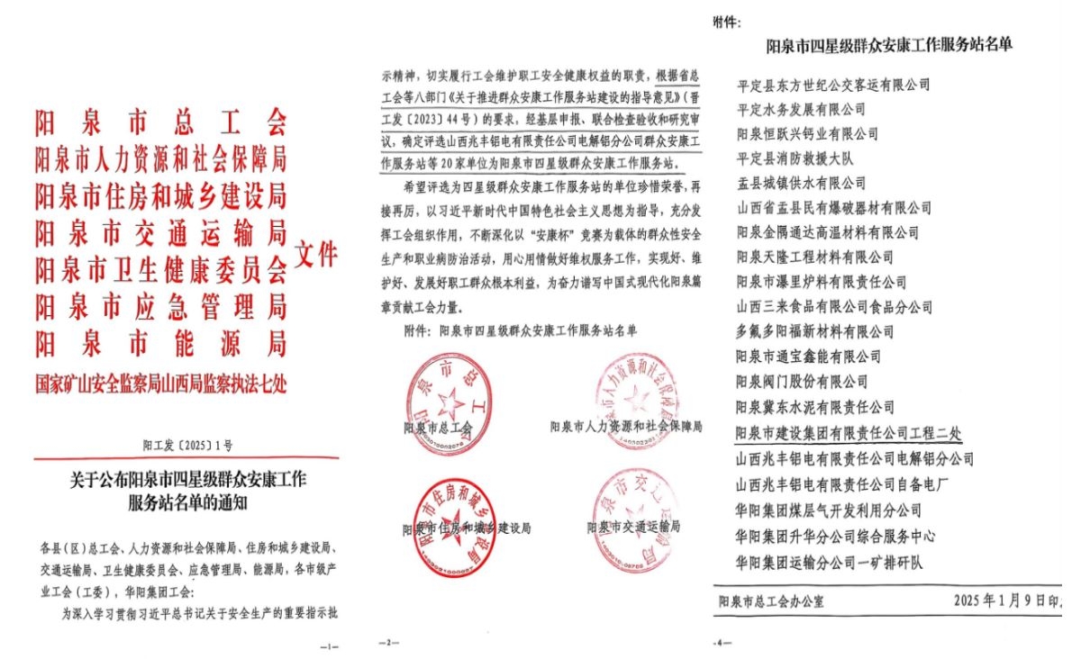 近日,集团公司工会再传喜讯,阳泉市建设集团有限责任公司工程二处建设的群众安康工作服务站,荣获阳泉市总工会授予的“四星级群众安康工作服务站”荣誉称号,并获得专项补助经费3万元。