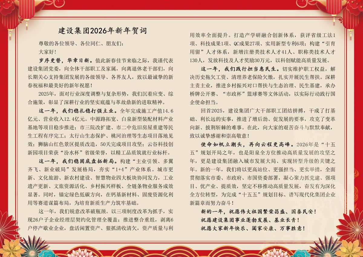 阳泉市建设集团2026年新年贺词